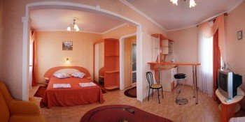 О днокомнатные номера с видом на море, полностью укомплектованы: ТV (спутник), кондиционер, холодильник, минибар, мягкая и корпусная мебель.