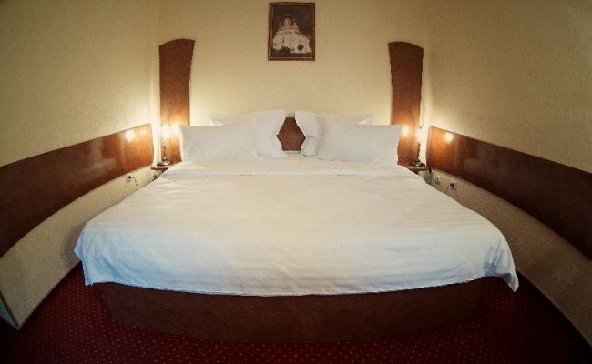 Это однокомнатный номер с широкой кроватью, телевизором, холодильником, небольшим письменным столиком, стульчиком. Ванная комната – душевая кабина и все необходимые душевые принадлежности. В стоимость номера входит завтрак «шведский стол» и минеральная вода.