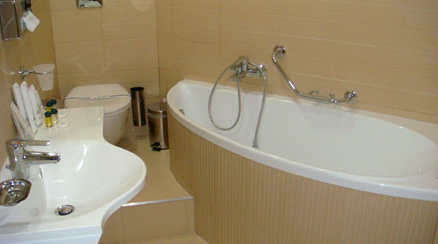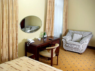 1-ком., двуспальная кровать, две тумбочки, два мягких кресла, письменный стол, кресло, LCD телевизор, мини-бар, шкаф, ванна, гостиничные аксессуары.