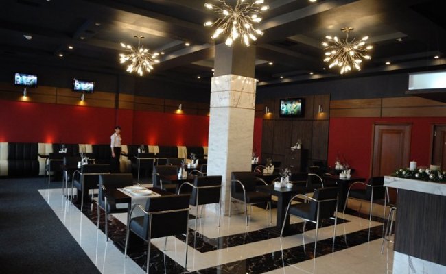 Европейская кухня ресторана гостиницы "Мир" полностью удовлетворит Ваши потребности во вкусных завтраках, обедах и изысканных ужинах. Участникам мероприятий, проходящих в конференц-зале, предоставляется услуга "кофе-пауза" и "фуршет". Количество мест за столиками - 50, фуршетных - 70, банкетных - 70.