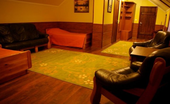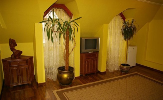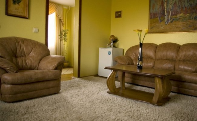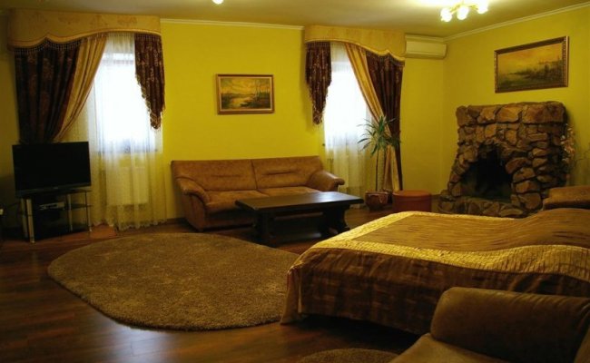 - Люкс улучшенный. Размещение класса VIP в нашем отеле предполагает проживание в изысканном номере: двуспальная кровать, мягкая мебель, камин, телевизор, кондиционер, телефон, холодильник с мини-баром.