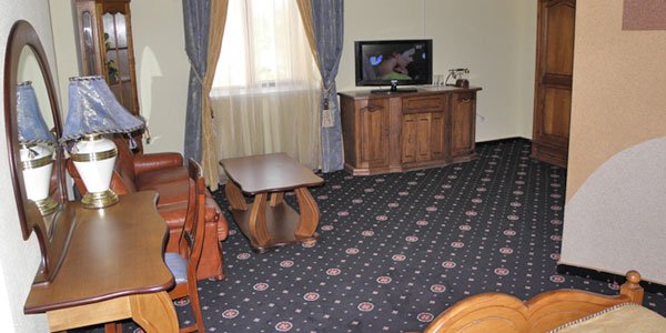 Центральная система кондиционирования обеспечивает постоянный приток свежего воздуха. Двойная система отопления, в том числе подогрев пола, сделает Ваше пребывание в номере более приятным и комфортным. В отеле круглосуточно работают бар и изысканный ресторан. Кроме того в отеле функционирует одна из лучних на западной украине турецких саун с басейном и сеновалом; кальянная комната, выполненая в восточном стиле; зал для игры на бельярде. Техническое оборудование, дизайн, обстановка номеров, квалифицированный персонал несомненно порадует самых требовательных посетителей гостиницы.