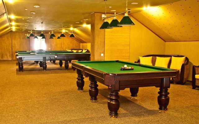 Бильярдная гостинично-ресторанного комплекса «Колизей» идеально подходит под описание бильярдного клуба который ищете Вы. Оригинальная обстановка, профессиональные столы и неповторимая атмосфера бильярдной являются отличительными чертами «Колизея». В нашем бильярдном клубе можно сыграть в наиболее распространенные игры: американский пул, русский бильярд. Бильярдный клуб ГРК «Колизей» располагает профессиональными столами и аксессуарами для бильярда. В просторном зале бильярдной расположение столов (четыре стола 12футов и один стол 9футов) не мешает игрокам наслаждаться игрой.