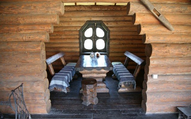 Двухуровневый деревянный сруб в национальном стиле, построенный из экологически чистого материала. Попадая в него, Вы ощущаете ауру древности исходящую от старинных вещей и утвари. Погрузитесь в атмосферу сельской жизни и отвлечётесь от городской суеты. Профессиональный персонал предложит на Ваш выбор отведать домашнюю украинскую кухню, гриль.