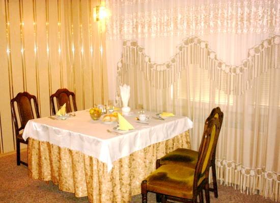 На первом этаже гостиницы работает ресторан, 2 банкетных зала.
