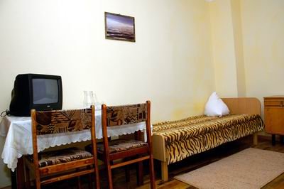 - Стандартный номер (одноместная комната в блоке 2+1): номер состоит из одной жилой комнаты с одной кроватью, входящей в состав блока из двух номеров (1 местный + 2-х местный, рассчитан на проживание одного человека (возможно проживание ребенка на дополнительном месте), телевизор и холодильник в холле, душ с горячей и холодной водой в номере, на блок, лоджия.