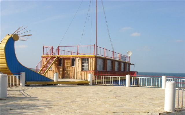 «Морской» бар. Приятная обстановка в греческом стиле. Здесь вы почувствуете себя гостем на пире у древних греков, так как вам предложат блюда античной кухни на изысканной греческой посуде. В баре ощущении прохлады придает водопад, на краю которого помещена окаменевшая губка, найденная на раскопках города Зенонов Херсонес. Губке несколько тысяч лет.