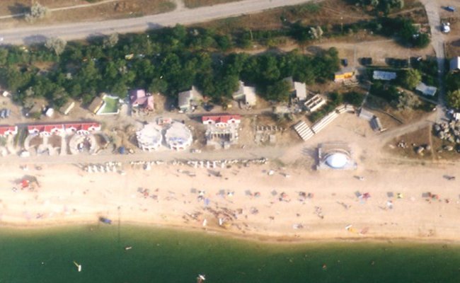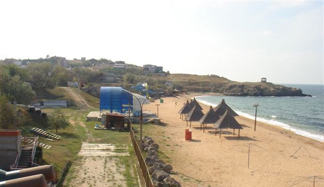 Пляж. Песчаный с мелкой ракушкой, оборудованный - навесы, зонты.