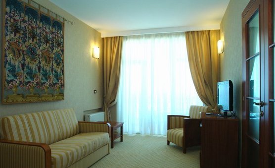 Отель - красивый, чистый, с прекрасной и ухоженной территорией. В номере тоже все понравилось. Обслуживание - для Украины - прсто прекрасное. Вечерами - живая музыка, которая не мешает спать, потому что стеклопакеты тоже с качественной звукоизоляцией. Не очень поняла почему людям в предыдущем отзыве не понравилось солнце в окно.... У нас были очень плотные шторы и мы их на день практически закрывали, потому что солнце слепило глаза. Кондиционер работал нормально, ни разу от жару не умирали. Очень понравился балкон - достаточно большой, с плетеными креслами и столиком. По вечерам это было прекрасное место для того что бы просто посидеть - почитать или подышать морским воздухом. Вид из окна тоже порадовал, наличие железнодорожных путей не смутило. Поезда конечно же там ходят, но мы их как то не замечали.