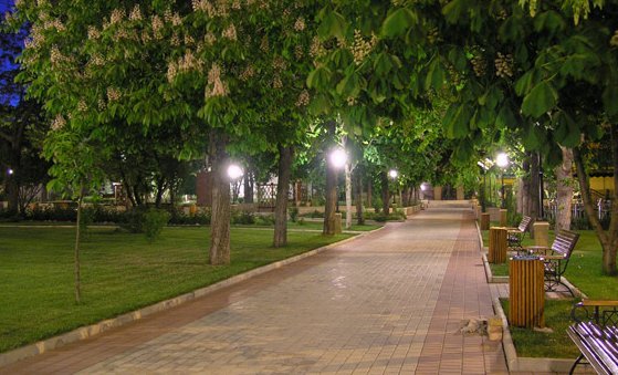 Отель расположен недалеко от моря, в историческом центре, но между морем и гостиницей - железная дорога. У отеля собственный небольшой парк, зеленый и ухоженный.