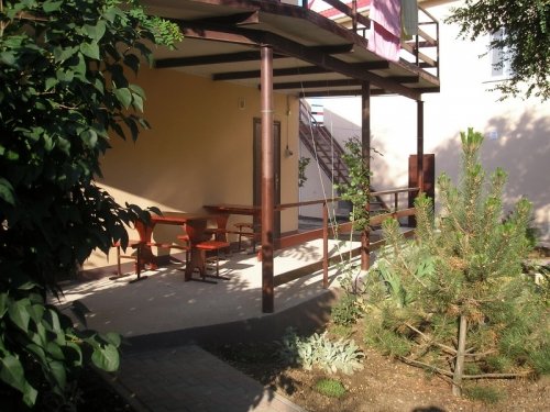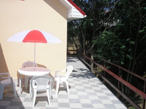 У каждого номера отдельная площадка со столиком, зонтиком и стульями.