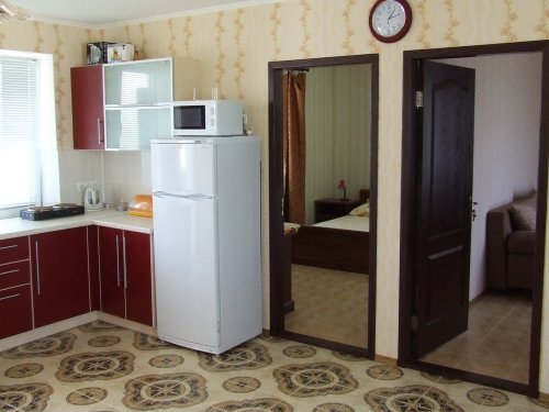 Отдыхающий получает: отдельно стоящий домик с индивидуальным входом, верандой с мебелью и кухней. В наличии 2,3 и 4-местные номера. В каждом номере имеется кухня с электроплитой, холодильником и посудой, чайник, вентилятор, удобные кровати. Душ, санузел общий оборудованный на территории базы отдыха.