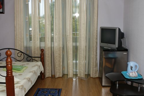 - Стандарт на 1-ом этаже - 3х-4х местный: холодильник, телевизор, отдельный балкон, шкаф для вещей. Удобства (туалет, душ) на территории для номеров стандарт и эконом класса.