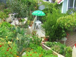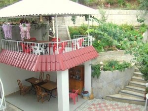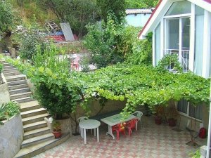 Во внутреннем дворе имеются 3 терассы со столиками, виноградная бесседка, и 2-х этажная открытая площадка для отдыха.