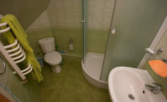 В санузле имеется душ, унитаз, раковина, по два полотенца.