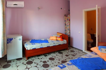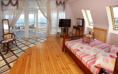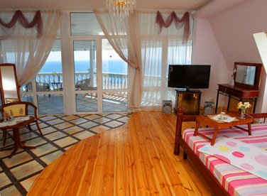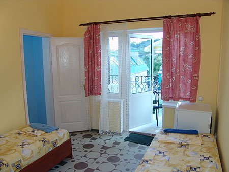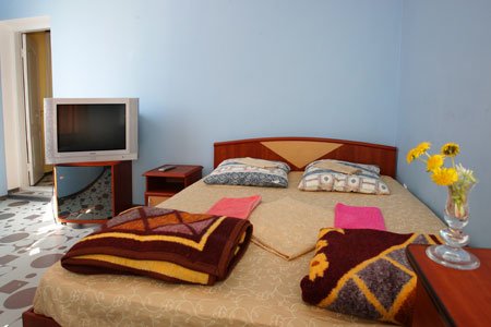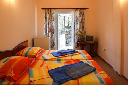 Для отдыха предлагаем двухместные номера со всеми удобствами (горячая вода постоянно, кабельное телевиденье парковочные места для ваших авто, пляж, бар) также имеются двухкомнатные номера с видом на море и гору Кастель.