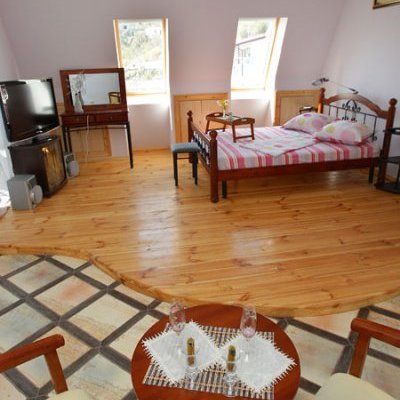 Двухкомнатный номер мансардного типа "люкс" Расположен на четвертом мансардном этаже , в номере есть джакузи с гидромассажем, в каждой комнате LCD телевизор и кондиционер. Новая престижная мебель.