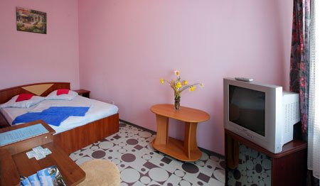 Двухместный Номера 2-х местный однокомнатный номер мотельного типа. В номере новая мебель, телевизор, кабельное телевиденье, холодильник, кондиционер, санузел: умывальник, унитаз, душ, холодная, горячая вода постоянно. Парковочные места для ваших авто, пляж, бар.
