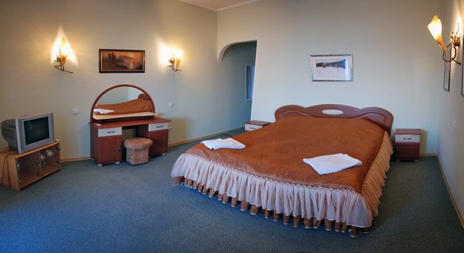 В номерах новая мебель, двухспальная кровать, диван для отдыха.
