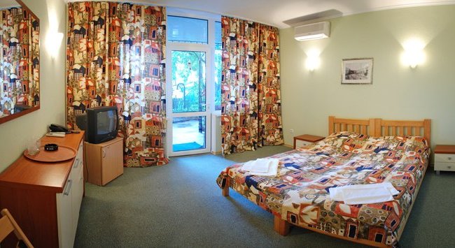 В номере: холодильник, телевизор, кондиционер, 1,5 кровати, хорошая мебель, горячая и холодная вода постоянно. В номере пляжные зонты, коврики для отдыха, минибар. Возможность 2х дополнительных мест (раскладушка или матрас надувной)