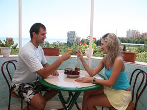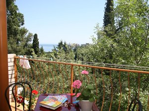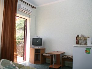 В каждом номере есть балкон с видом на море, на которых расположены столики для отдыха.