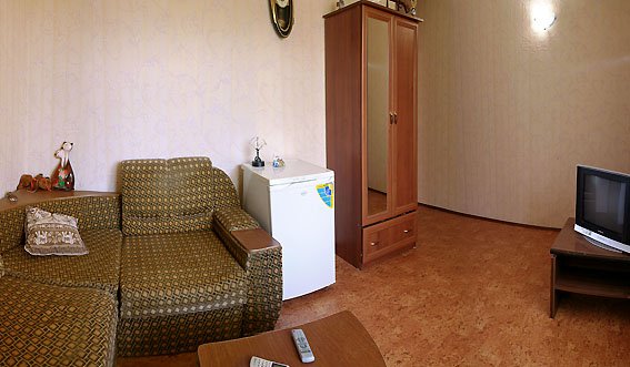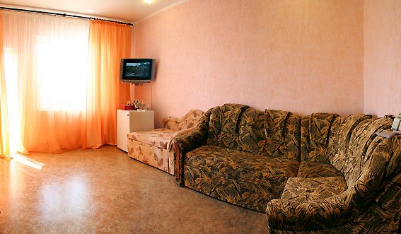 однокомнатными номерами (2+1), оборудованные мебелью, 2х спальной кроватью, плазменным телевизором, холодильником, сплит-системой, санузлом совмещенным, (душ).