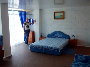 В Гостинице Прада 10 двухместных больших номеров (около 35 м.кв.) с наличием 1 доп.места. Номер оснащен кондиционером, телевизором, холодильником, новая мебель. Санузел совмещенный. Горячая и холодная вода постоянно. Открытые балконы открывают шикарный вид на море, горы.