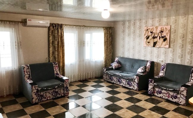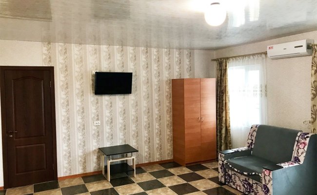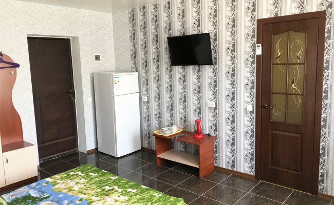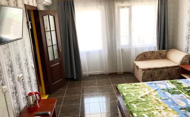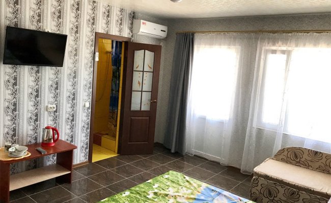 В номере двухспальная кровать и диван, холодильник, кондиционер, телевизор (спутниковое ТВ), санузел (горячая, холодная, вода, душ, умывальник, туалет), электрочайник. Первый этаж - номер с верандой. Второй этаж - номер с балконом.