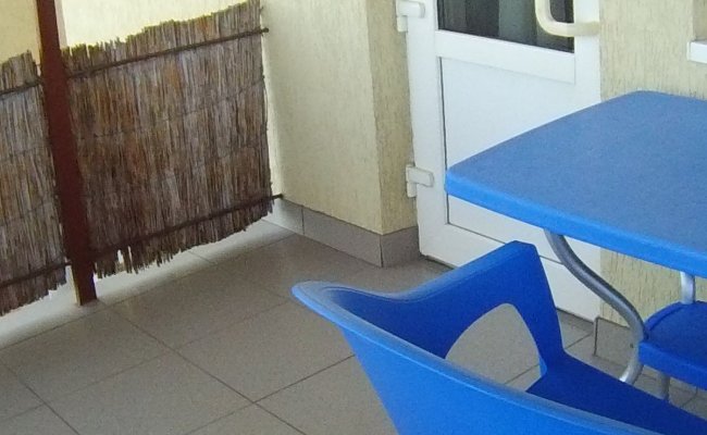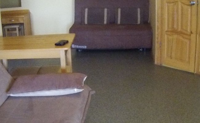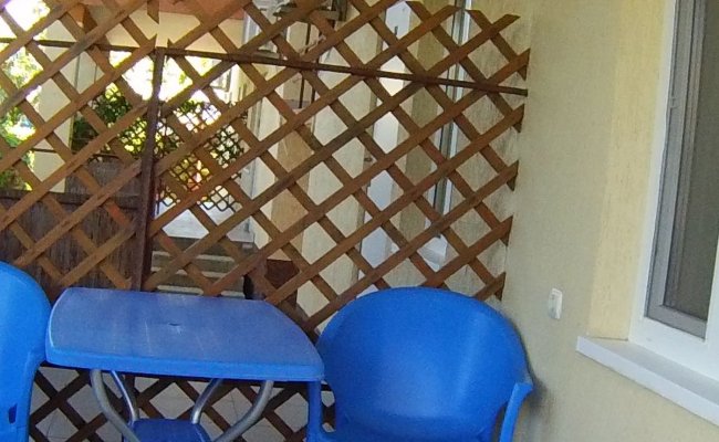 Номера класса «Люкс». На базе доступно 20 номеров Возможно проживание 2-6 человек. Номер состоит из следующих зон: спальня (кондиционер, двуспальная кровать с ортопедическим матрасом, гипоаллергенные подушки, тумбочка, телевизор); гостиная с кухней (удобный диван, стол со стульями, кухонная стенка, мойка, вытяжка, электропечь на две конфорки, набор посуды, электрочайник, холодильник); санузел (поддон с душевым шлангом с горячей и холодной водой, полочки, умывальник, унитаз); терраса. (стол, стулья).