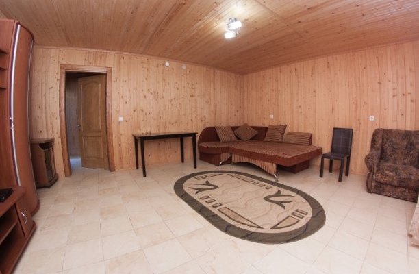- 1 этаж. Мебель: угловой диван, стол со стульями, кресло, платяной шкаф, кондиционер, телевизор, санузел с горячей водой (бойлер), холодильник.