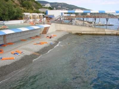 Пляж: собственный мелкогалечный оборудованный в Мисхорском парке, спуск на пляж по канатной дороге, принадлежащей отелю. На территории пляжа: открытый взрослый и детский бассейны, джакузи, шезлонги и лежаки с матрацами. пляжные полотенца, индивидуальное обслуж