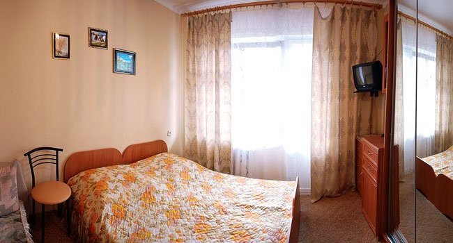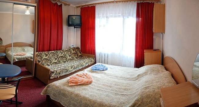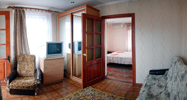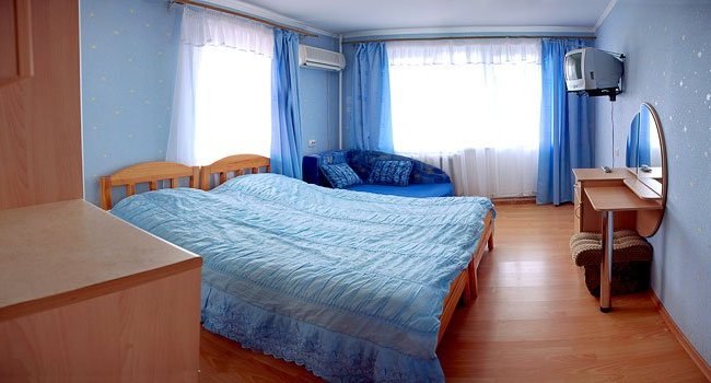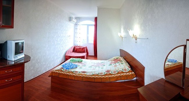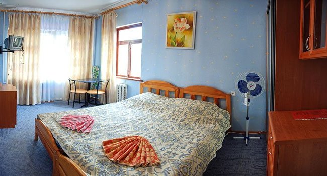 В номерах находится телевизор, холодильник, кондиционер, санузел с душем, горячая вода постоянно. В зимнее время централизованное отопление.
