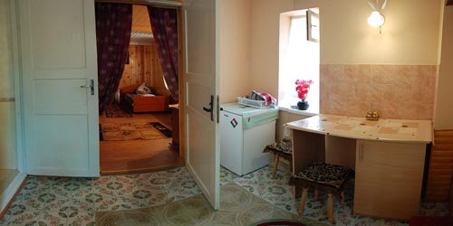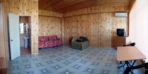 Один номер двухкомнатный номер, номер-студио, с санузлом в номере диван, кровать двухспальная, холодильник, телевизор, 2 балкона с изумительным видом на море и горы.. В номере кондиционер, мебель. Кухня общая во дворе.