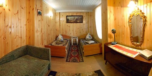 * Трехкомнатный номер расчитан на 4-6 мест: зал, 2 спальни, кухня, санузел. В номере имеется кондиционер, холодильник, телевизор (спутник), бытовые принадлежности. Имеется 2 дивана, и 2 кровати. Санузел с душем. Холодная и горячая вода постоянно.