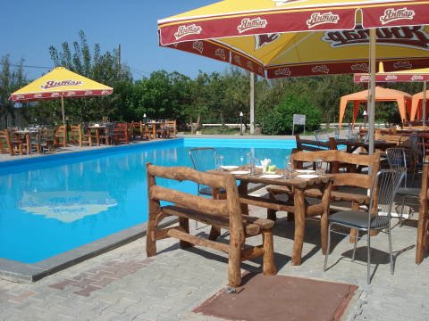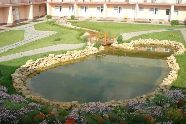 Большая ухоженная территория гостиничного комплекса "Тройка" в Железном Порту (2,2 га) так и манит прогуляться по тенистым аллеям, посидеть возле фонтанов, сфотографироваться рядом с красочными клумбами благоухающих цветов и, конечно же, искупаться в большом бассейне и позагарать в шезлонге возле него, наслаждаясь прохладными коктейлями, которые можно заказать здесь же в баре.