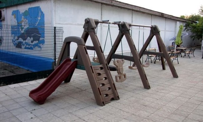 - Открытая детская площадка (мытая но перед открытием сезона и дождём),