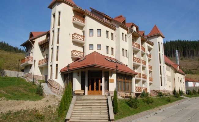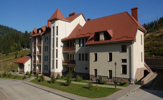 Пятиэтажный корпус отеля туристического комплекса "Захар Беркут" расположенный на выезде из поселка Славское. Отель предлагает комфортный отдых в Карпатах, в номерах которые полностью соответствуют европейским стандартам. Номерной фонд туристического комплекса "Захар Беркут" составляет 24 комфортных номера.