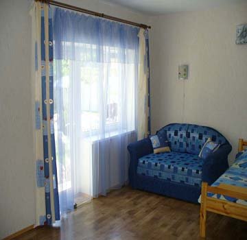 Предлагаем Вам для проживания в коттедже номера площадью 20 - 24 м.кв. Расположены они в одном здании, но каждый имеет свой, отдельный вход, оснащен индивидуальным санузлом, который обрудован современной сантехникой (душевая кабина, туалет), кухней, кондиционером, холодильником, телевизором (кабельное ТВ) и Wi-Fi интернет. Холодная и горячая вода есть постоянно, коттеджи оборудованы автономным бойлером и системой отопления.