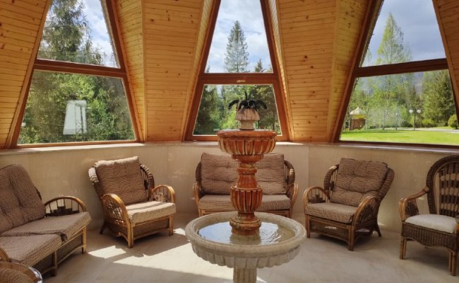На втором этаже главного корпуса возле рецепции расположен бар с большим телеэкраном, домашняя библиотека, сувенирная лавка.