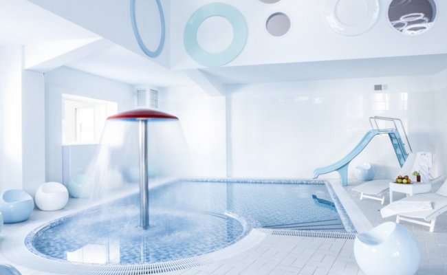 На территории СПА-центра «Мед-Палас» находится два бассейна (12х4м и 8х6х9м), с температурой воды около 25-27℃, две ванны-джакузи, тренажерный зал, солярий, фито-бар и 4 вида саун: