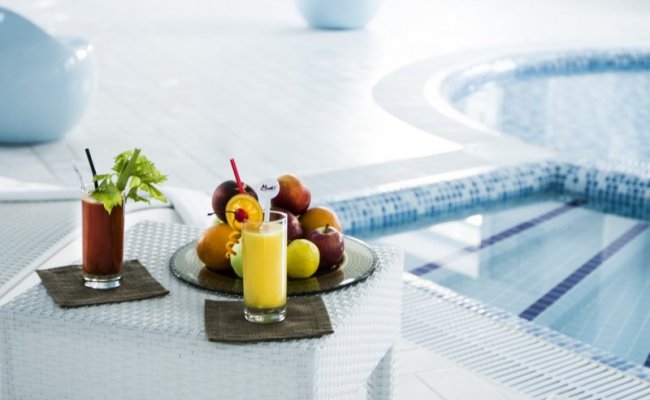 На территории отеля «Mirotel Resort & Spa» в Трускавце находится крытый бассейн (25 м в длину). Рядом с бассейном находится бар с широким ассортиментом свежевыжатых соков.