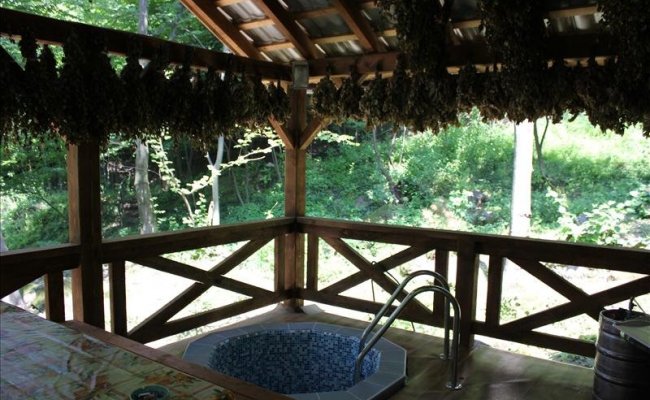 Также на территории Усадьбы есть бассейн с шезлонгами и банька для любителей горячего пара. В бане отдельно находятся: санузел, душ с гидромассажем и небольшой бассейн на улице. Возле бани находится терраса с деревянным столом, лавочками и Чопик для пива.