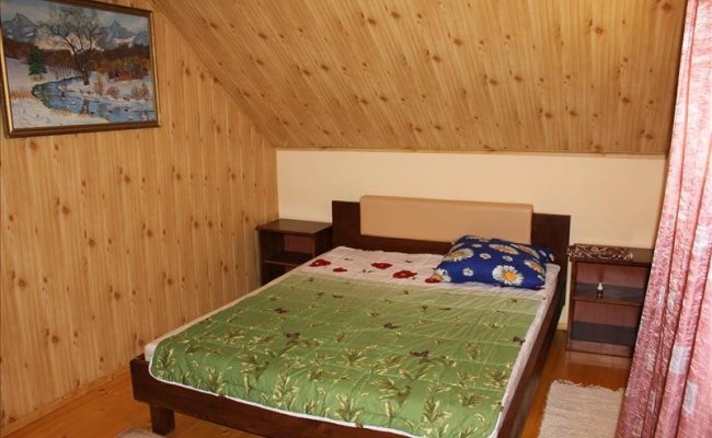 "Лесная Усадьба" - это двухэтажный дом. На первом этаже расположены - холл с камином, кухня (холодильник, посуда, микроволновая печь, электрочайник) и санузел (душевая кабина, умывальник, туалет). Также есть терраса, где можно не только завтракать, но и проводить тихие вечера на мягких креслах. На втором этаже находятся две отдельные спальни с дополнительными местами: первая комната 2 +1 +1, вторая комната 2 +1. В каждой из комнат есть сплошное двуспальная кровать.