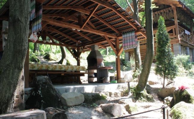 Отдельно на территории усадьбы есть место для вечернего отдыха. Это беседка с мангалом и столом с лавочками. В ней можно отдыхать не только днем, но и ночью. Она хорошо освещается.