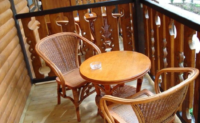 Двухкомнатный номер: веранда, на которой расположен столик с креслами; прихожая с холодильником, электрочайником, чашками; спальня с двуспальной кроватью 2,00*1,80, 2 тумбочки, шифоньером; зал, в котором удобный диван, телевизор - плазма, обеденный стол + 4 стула, а также из зала отдельный выход на веранду; санузел. В номере предусмотрен кондиционер в летнее время и электроконвектора в холодное время.