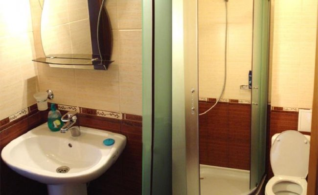 Однокомнатный номер: веранда, на которой расположен столик с двумя креслами; прихожая с холодильником, электрочайником, 2 чашками; спальня оборудована удобной кроватью 2,00*1,80, 2 тумбочки, телевизор - плазма, санузел с установленной душевой кабинкой и бойлером, позволяющим пользоваться горячей водой круглосуточно, а также электроконвектора для обогрева в холодное время, кондиционер в летнее время.