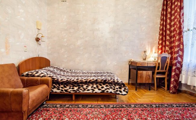 Однокомнатный номер стандарт предоставит комфортное пространство для проживания одного гостя. Здесь есть вся необходимая мебель: полуторная кровать, кресло, письменный стол/журнальный столик, телевизор, холодильник, отдельный санузел с душевой кабинкой. Убирается ежедневно.