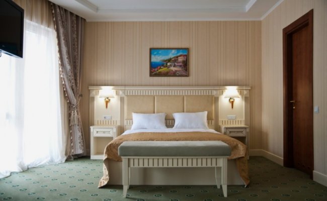 Комфортабельный современный номер, который идеально подойдет супружеской чете с ребенком. Номер оснащен всем необходимым для круглогодичного отдыха: системой климат-контроля, великолепной ванной с теплым полом, гардеробным шкафом, современным ТВ со спутниковыми каналами, возможностью подключения к Интернет.