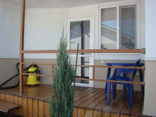 - Все номера обустроены с комфортом: современный интерьер, индивидуальная система кондиционирования, кабельное телевидение, холодильник, санузел (душ оборудован водонагревателем, круглосуточная подача воды), комплект посуды, уютная веранда с летней мебелью. Ежедневная уборка в номерах.