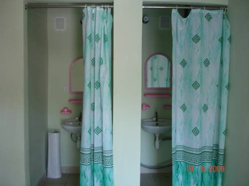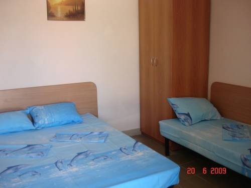 Размещение: Двухэтажный корпус с двух-, трех-, четырех- местными номерами. В каждом номере двухспальная и 1 или 2 односпальных кровати, кондиционер, холодильник, телевизор, пенал для одежды, тумбочки, этажерка для посуды, зеркало, свой большой балкон с пластиковым столом и креслами, пол - керамогранит. Туалеты и умывальники на этаже. Душевые - холодная и горячая круглосуточно.